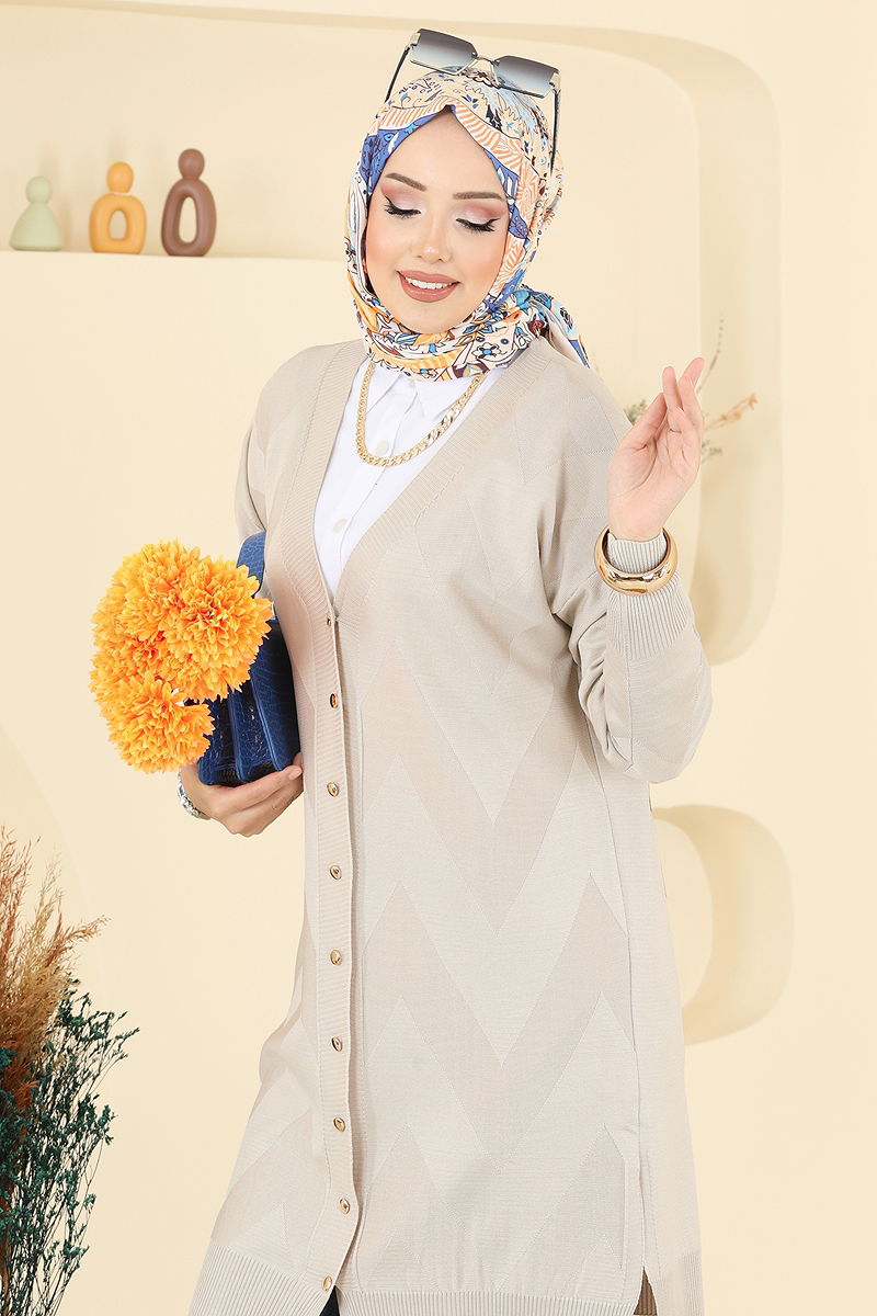 Product Feature : It is a new season hijab fashion product. The product has From the front buttons. It has a slash.. Unlined. Blouse is not included. Sample combination is made with the blouse to show the intended use of the product. There may be a tonal difference in the product due to concept photo shoots.