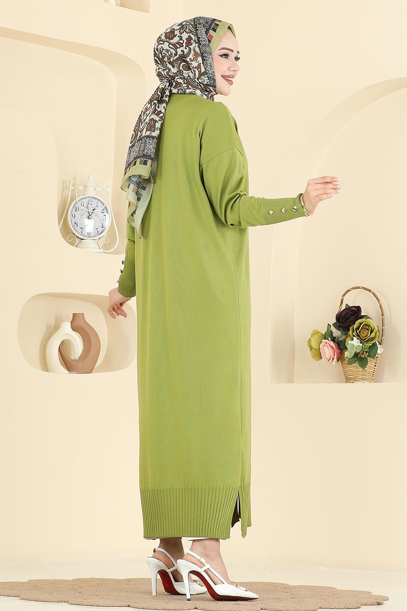 Elegant and comfortable, the Accessorized Buttoned Mercerized Cardigan is a hijab-friendly product that can be comfortably worn in all seasons. Its special mercerized knit fabric is both durable and light, providing ideal comfort throughout the year. The V-neck design and front buttons give the cardigan a modern look, while the slit detail offers freedom of movement. Suitable for gentle wash at 30 degrees Celsius, this cardigan will be a favorite in your wardrobe for its long-lasting use. The accessory buttons on the cuffs add an extra touch of elegance.