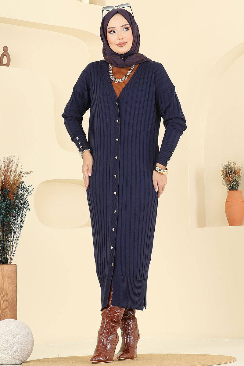 The Front Buttoned Knit Cardigan is specially designed for modest wear. Made from Mercerized Knit fabric, this cardigan ensures you stay stylish during the autumn and winter months. Its front-buttoned design and cuff accessory buttons offer a striking look. The unlined structure makes it light and practical. Available in a standard size, this piece is a must-have in every wardrobe.