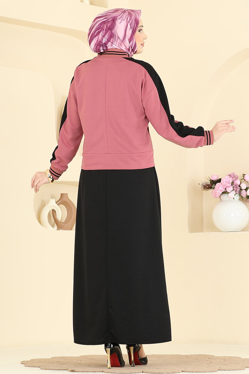 Ceket Detaylı 2 li Elbise 2858SL432 Koyu Gül Kurusu&Siyah