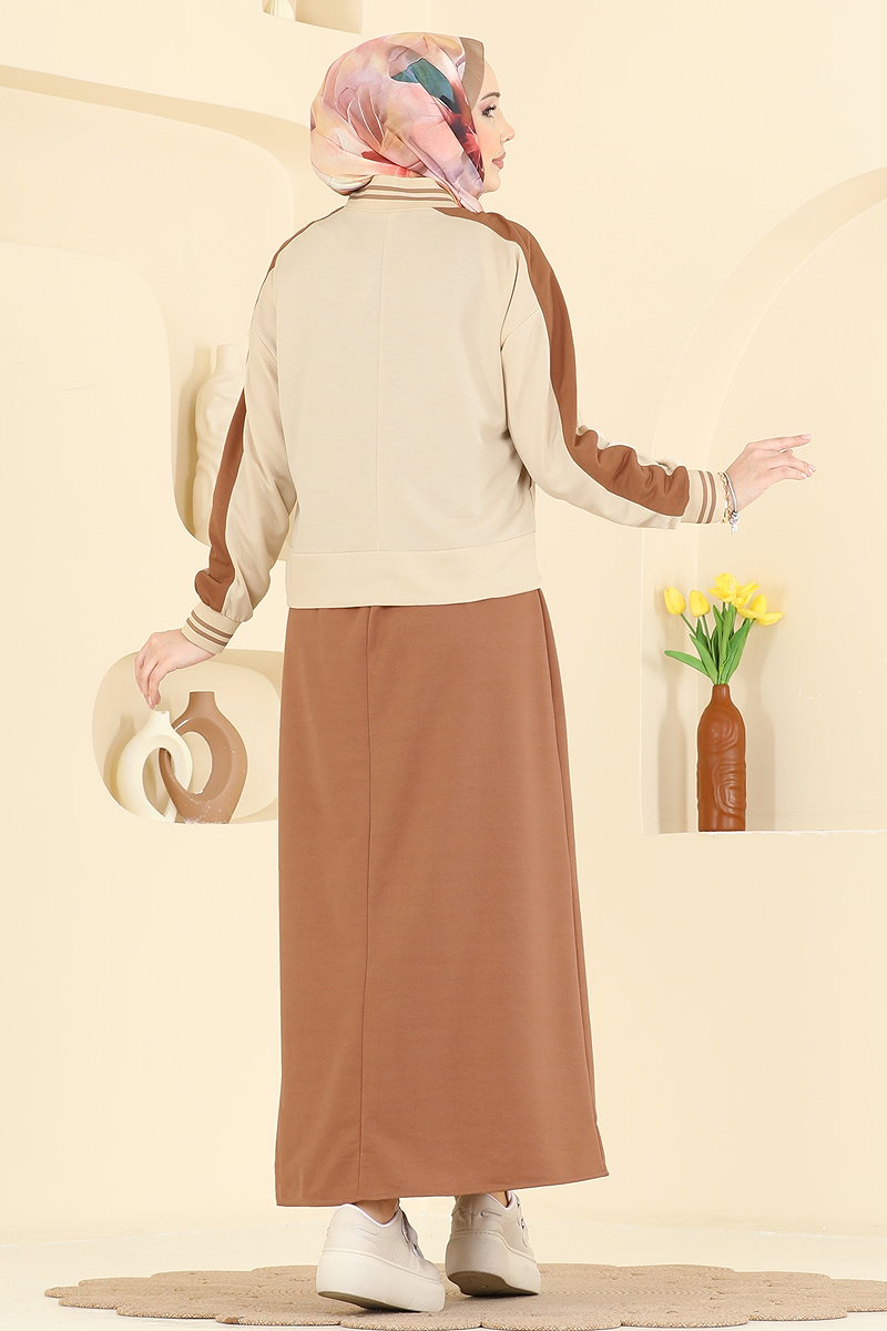 Ceket Detaylı 2 li Elbise 2858SL432 Taş&Pudra Vizyon