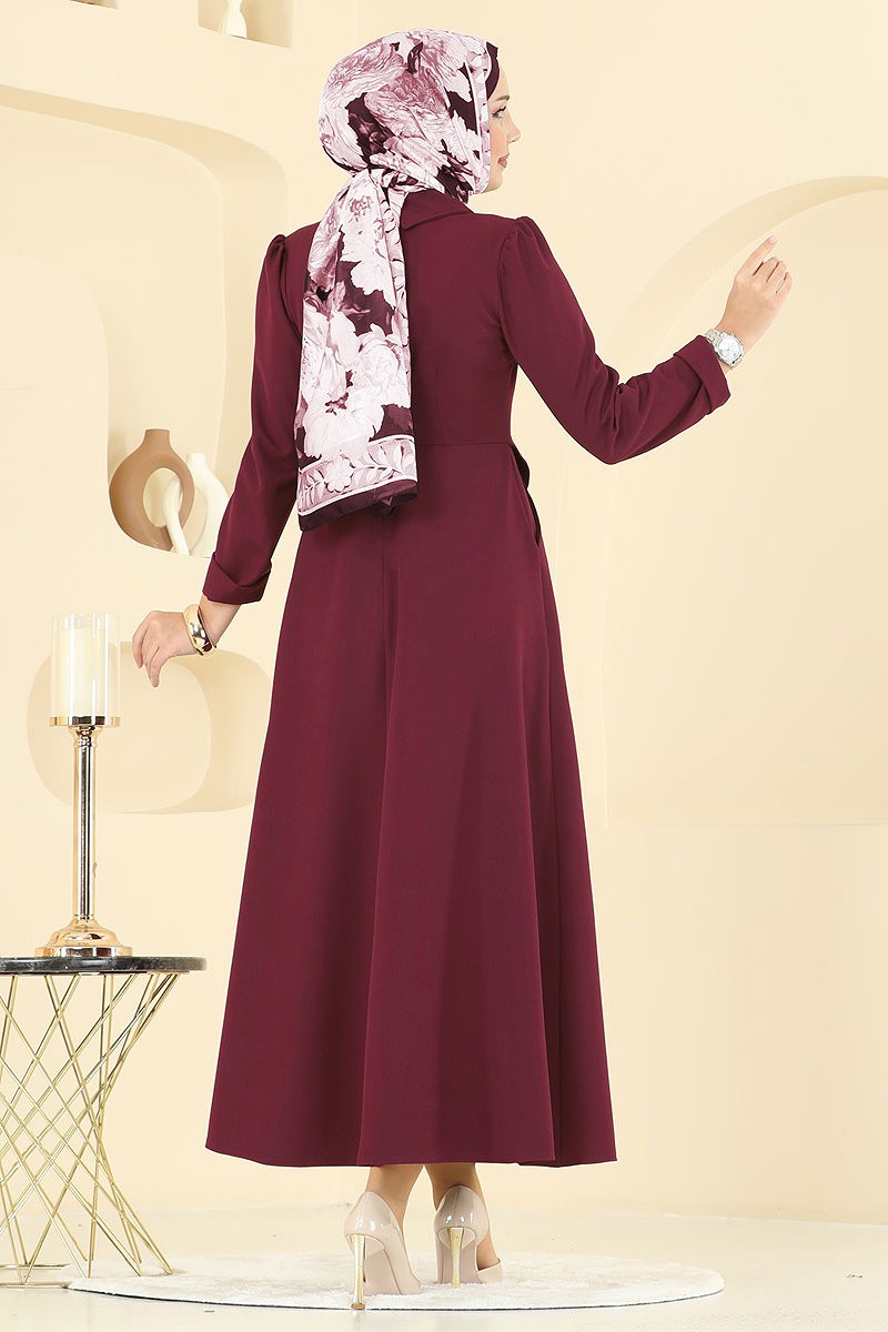 Ceket Detaylı Dabıl Elbise 2743SL432 Açık Bordo