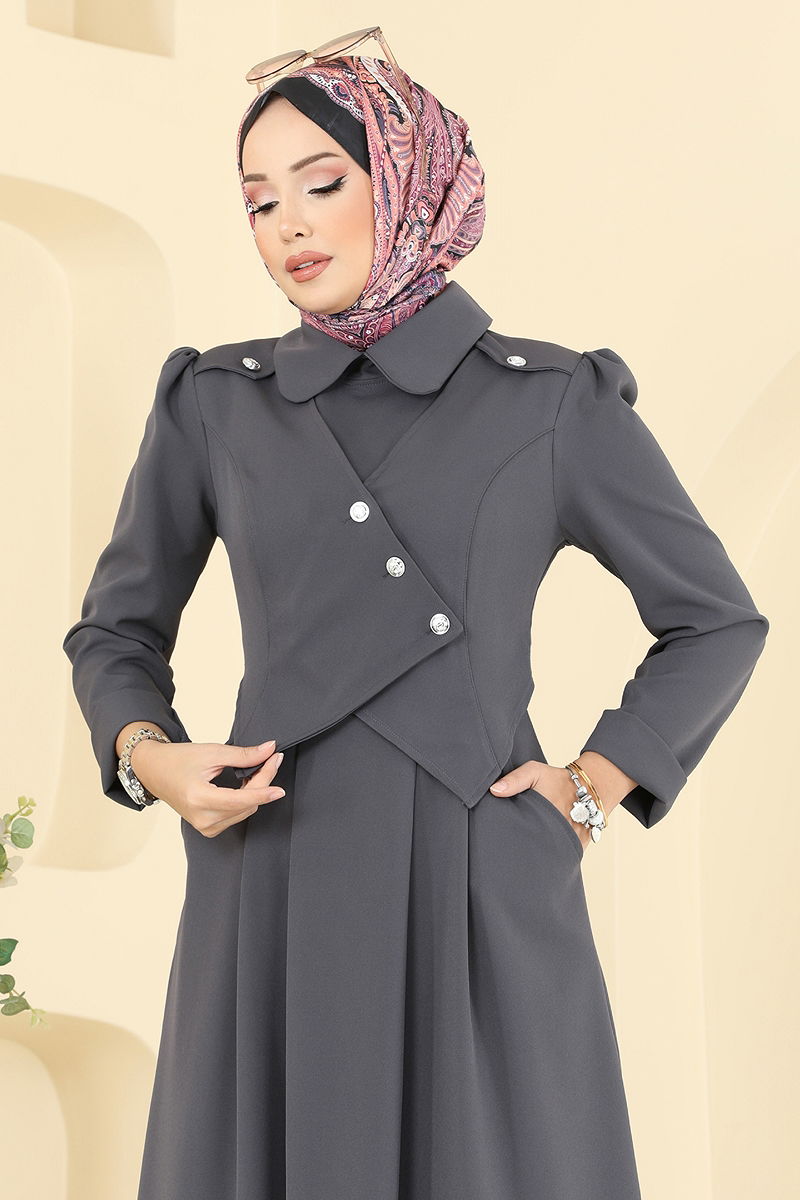 Ceket Detaylı Dabıl Elbise Antrasit