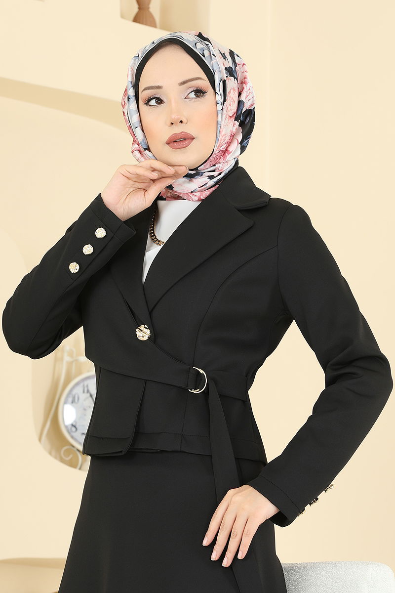 Ceket Detaylı Scuba Takım 2778SL432 Siyah