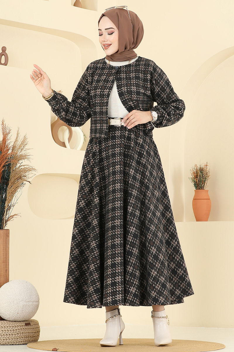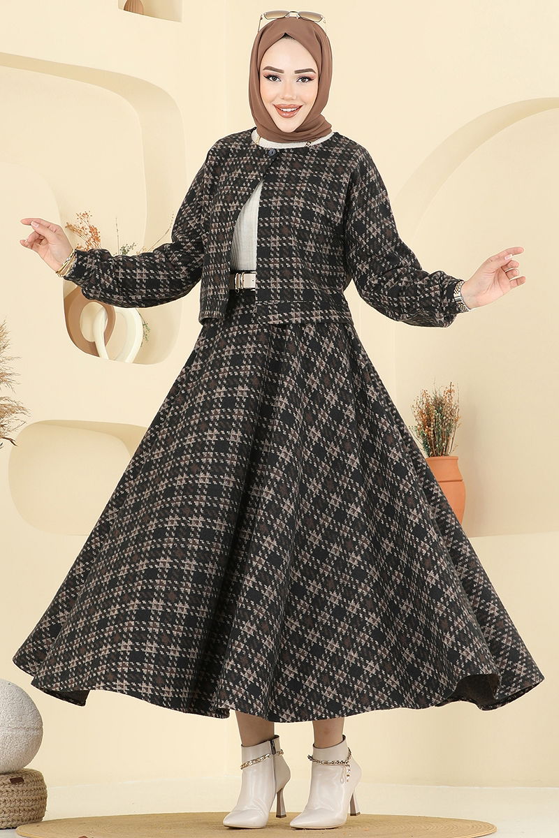 Ceketli Kışlık Tesettür Takım Kahve