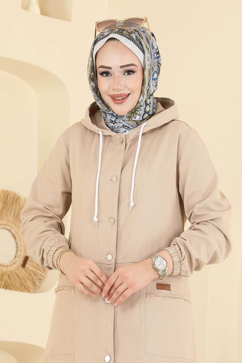 Ürün Özelliği : Yeni sezon tesettür moda ürünüdür. Yaka bağcık aktiftir. Ürün Kapşonlu yakadır. Ürün Önden düğmelidir. Astarsızdır.İç göstermez.. Ürün beli dikişlidir. Arma detayı dikilidir. Cep mevcuttur. Manşet lastiklidir.Konsept fotoğraf çekimlerinden dolayı üründe ton farklılığı olabilir.