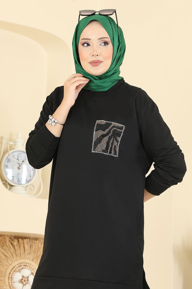 Cep Desenli İki İp Tunik 306OZN1046 Siyah