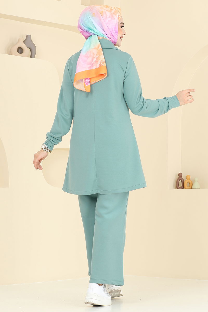 Our Pocket Detail Hijab Suit is a special design that can be comfortably worn in all seasons. Washable at 30 degrees with gentle care, this suit is made from dual-thread fabric and stands out for its durability. Its shirt collar design and unlined structure add elegance to its look. The accessible zipper at the front offers practical usage, while the elastic waist on the trousers ensures a comfortable fit. The active breast pocket detail adds both functional and aesthetic touches. This stylish and comfortable hijab suit is suitable for all sizes.