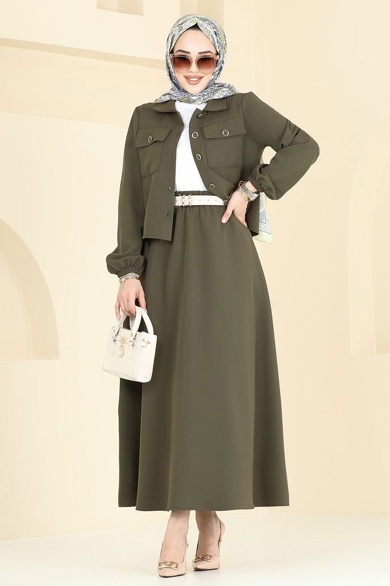 Cep Detaylı Etekli Takım Haki