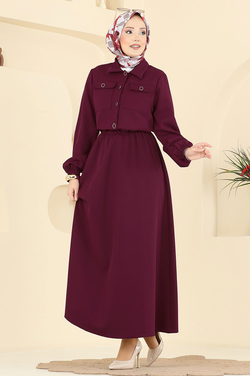 Cep Detaylı Etekli Takım 2601SL432 Mürdüm