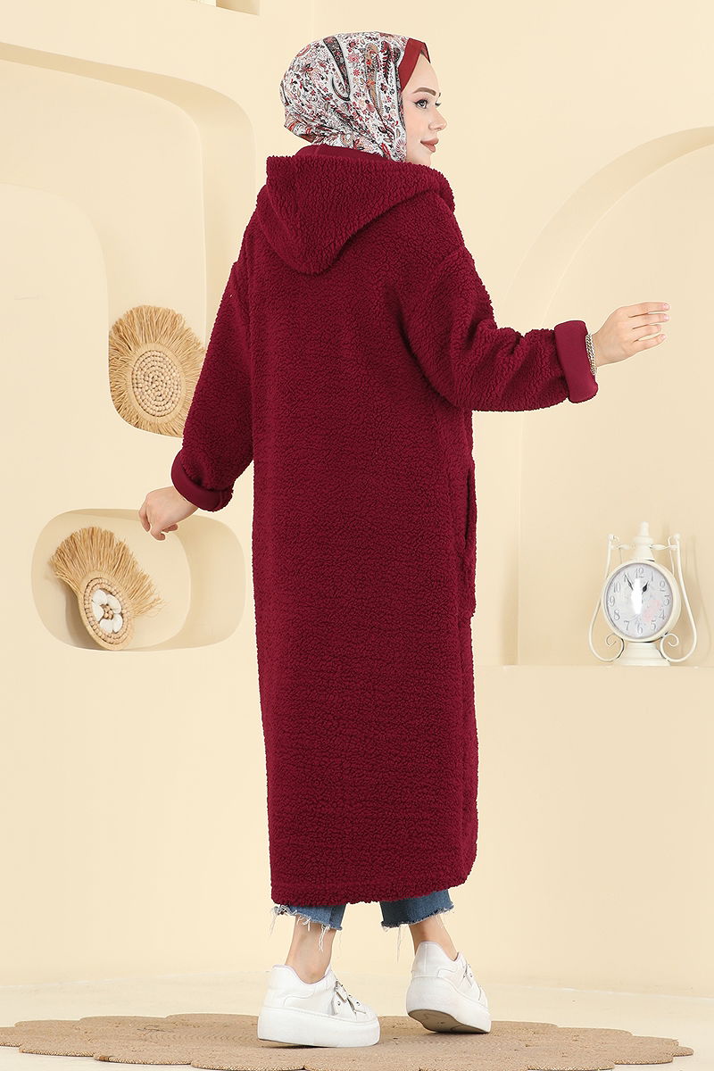 Cep Detaylı Peluş Hırka 2147LYD1165 Bordo