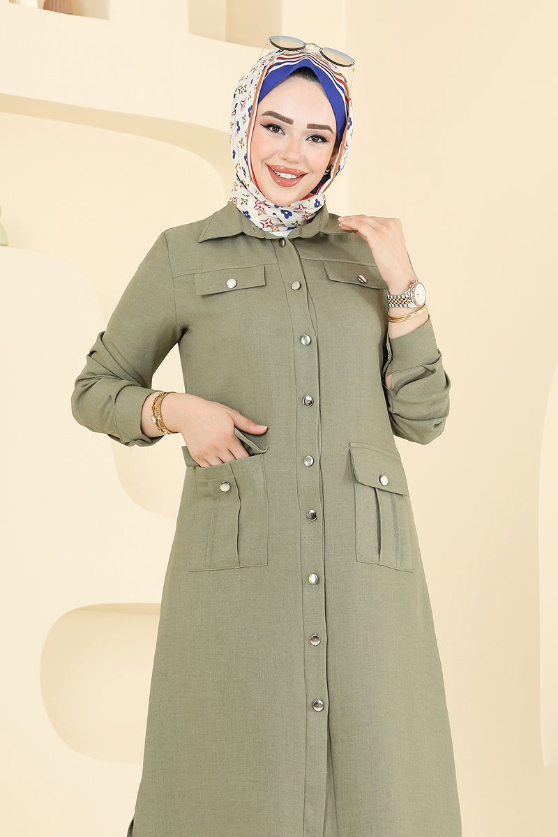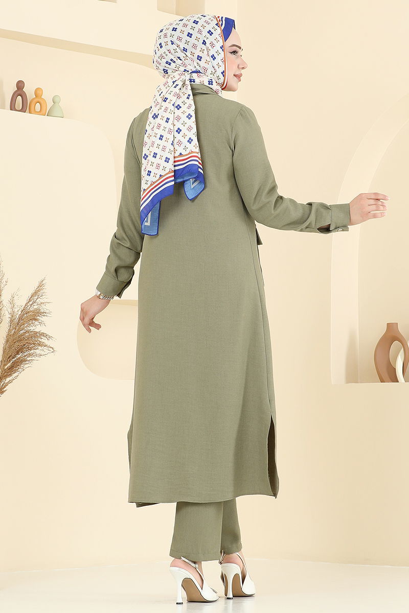 Ürün Özelliği : Yeni sezon tesettür moda ürünüdür. Ürün Gömlek yakadır. Ürün Önden düğmelidir. Tunik yandan yırtmaçlıdır.. Astarsızdır. Cep mevcuttur. Pantolon beli lastiklidir. Manşet düğmeleri aktiftir. Konsept fotoğraf çekimlerinden dolayı üründe ton farklılığı olabilir.