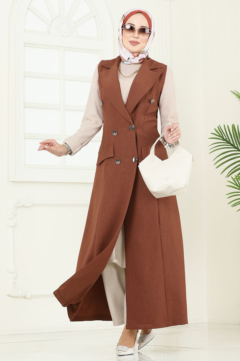 Ürün Özelliği : Yeni sezon tesettür moda ürünüdür. Ürün Kruvaze yakadır. Ürün Önden kullanılabilir yarım düğmelidir. Astarsızdır. Cep detayı aksesuardır. Pantolon beli lastiklidir. Konsept fotoğraf çekimlerinden dolayı üründe ton farklılığı olabilir.