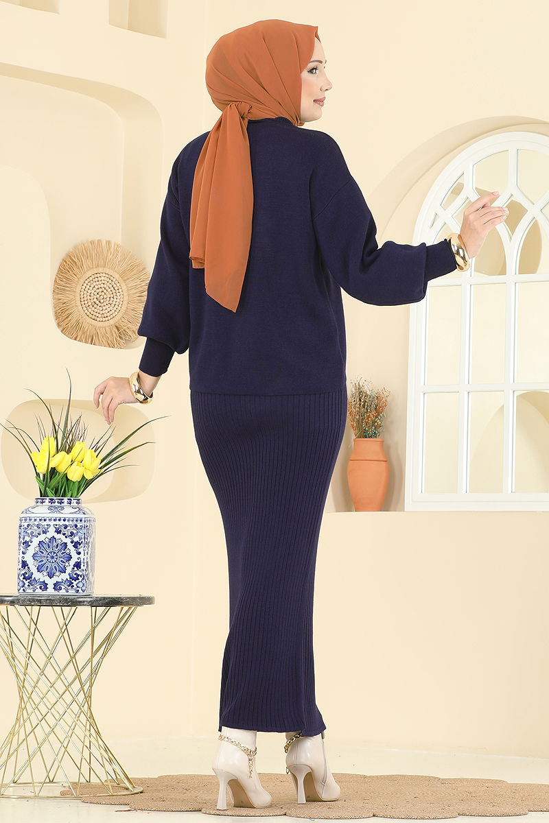 Ürün Adı: Çiçek Aksesuarlı İkili Takım KOMBİN. Bu özel tasarım tesettür takım, sonbahar ve kış aylarında şıklığınızı korumanız için idealdir. Triko kumaştan üretilen bu takım, astarsızdır ve rahat bir kullanım sunar. Standart bedenlerde mevcut olan takım, iç elbise ve dış giyim olmak üzere iki parçadan oluşmaktadır. İç elbise kafadan giyilebilir yapıda olup, kolsuzdur ve ayrıca kullanılabilir. Üzerinde zarif çiçek detayları bulunan bluz, bu takımın en dikkat çekici parçasıdır.
