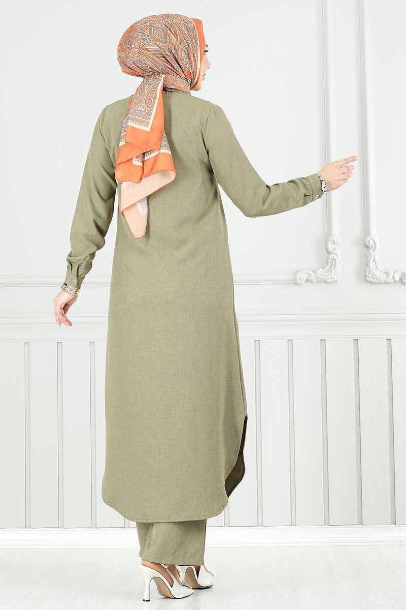 Ürün Özelliği : Yeni sezon tesettür moda ürünüdür. Ürün Gömlek yakadır. Ürün Önden düğmelidir. Tunik yandan yırtmaçlıdır.. Astarsızdır. Broş ürüne dahildir, isteğe bağlı kullanılmayabilir. Bluz ürüne dahil değildir. Ürün kullanım amacını göstermek için bluz ile örnek kombin yapılmıştır. Pantolon beli lastiklidir. Manşet düğmeleri aktiftir. Konsept fotoğraf çekimlerinden dolayı üründe ton farklılığı olabilir.