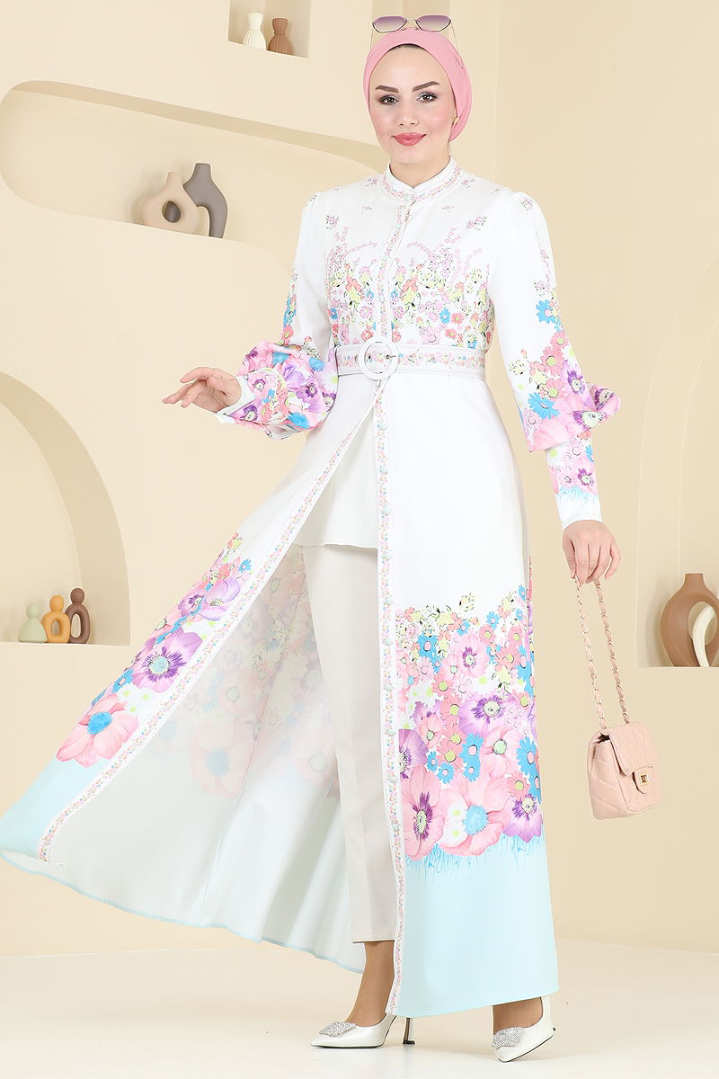 Kumaş Özelliği : Atlas kumaştan imal edilmiştir.Dört mevsim kullanılabilir kumaştır.Ürün Özelliği :Yeni sezon tesettür moda ürünüdür. (Astarsızdır.)Yarım hakim yakadır.Önden kullanılabilir düğmeleri bulunmaktadır.Kemer ürüne dahildir, isteğe bağlı kullanılmayabilir.Ürün renginde konsept çekimlerinden dolayı ton farklılığı olabilir.