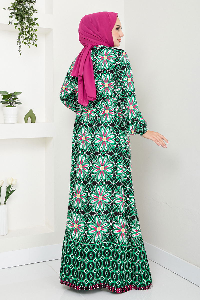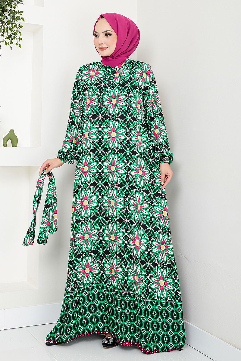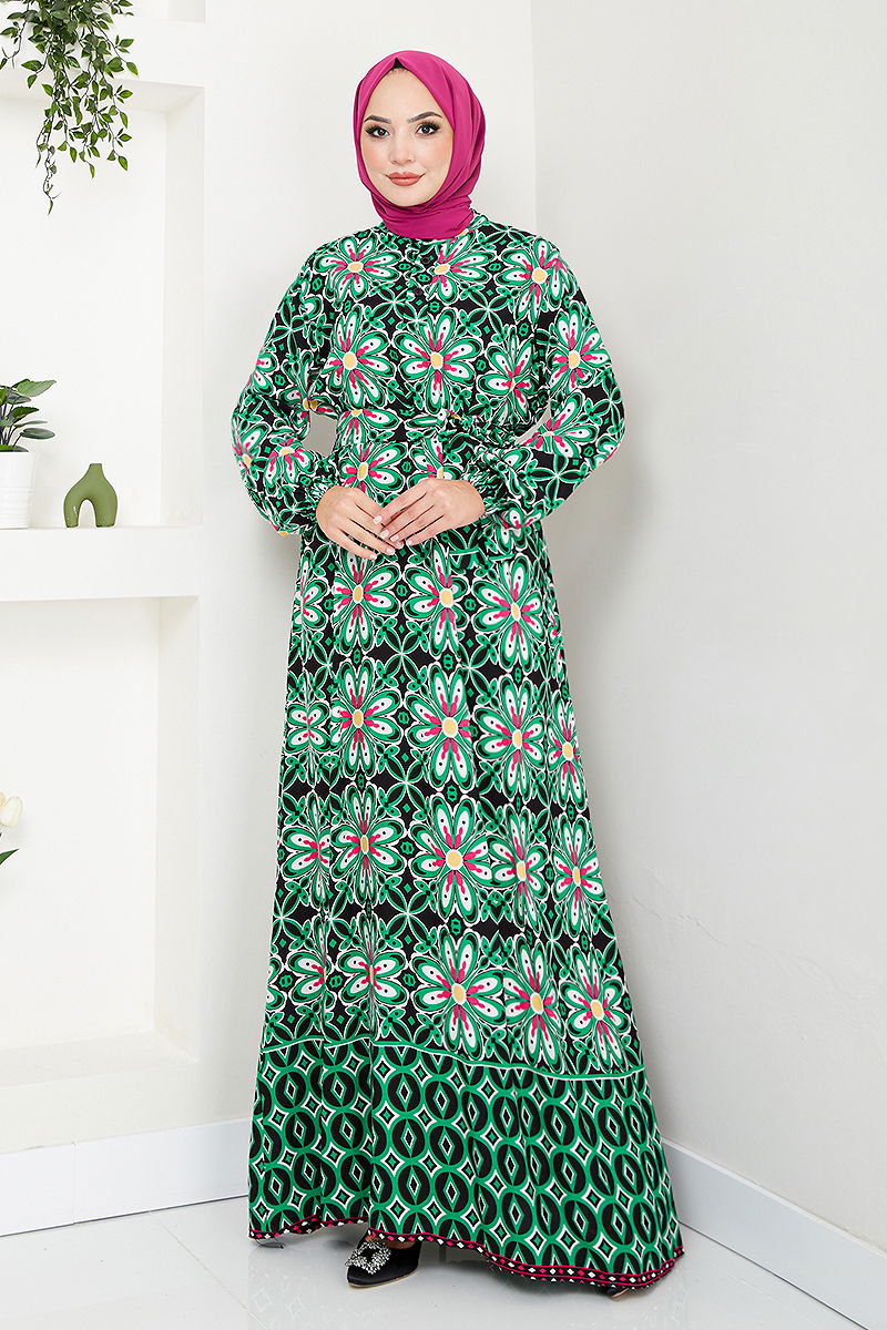 Çiçek Desenli Elbise model tesettür ürünüdür. Elde yıkama yapılmalıdır. Birinci sınıf Viskon kumaştan imal edilmiştir. Ürün Önden kullanılabilir yarım düğmelidir. Astarsızdır. Manşet lastiklidir.