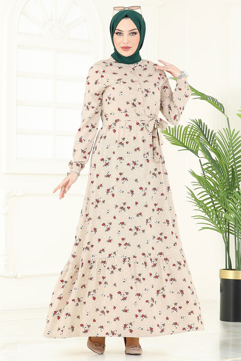Koleksiyonunuza dört mevsim uyum sağlayacak Çiçek Desenli Viskon Elbise'yi ekleyin! Özellikle tesettür giyim tercih edenler için tasarlanmış bu elbise, viskon kumaşı sayesinde rahat ve şık bir kullanım sunar. Bisiklet yaka ve yarım düğmeli ön kısım ile modern bir görünüme sahip olan elbise, lastikli manşetleri ile konfor sunar. Ayrıca, kemerli tasarımı sayesinde farklı tarzlarda kullanım olanağı sağlar; kemer dikişsiz orta kısım ile dalgalanmayı önler. Elde yıkama önerilir.