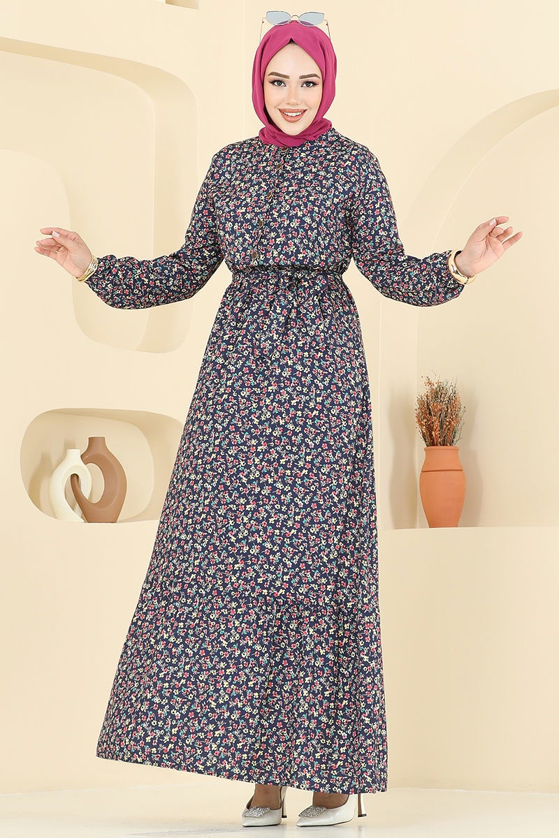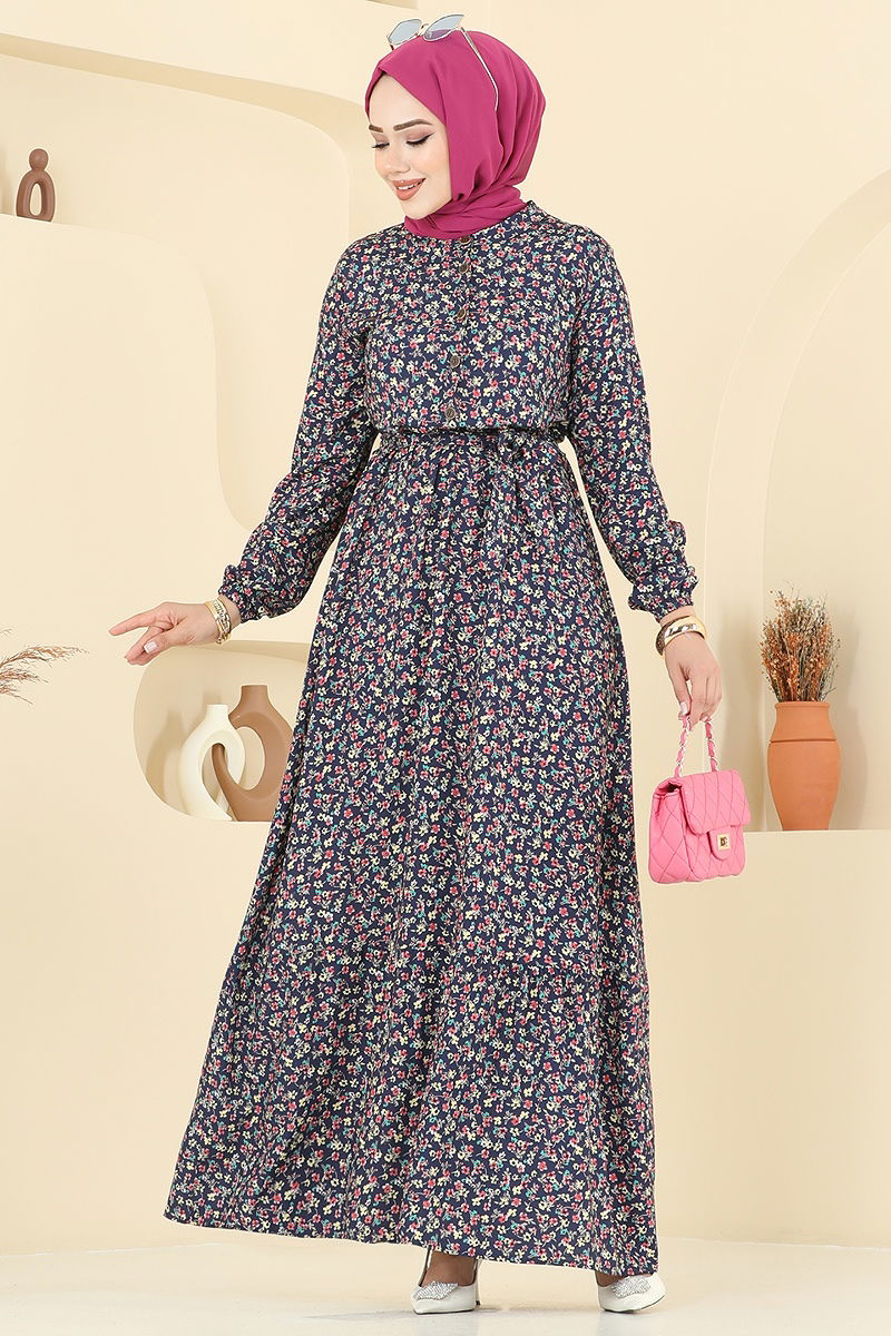 Şıklığı ve rahatlığı bir arada sunan Çiçek Desenli Viskon Elbise, tesettür giyim tarzınızı tamamlayacak mükemmel bir seçimdir. Dört mevsim boyunca rahatlıkla kullanabileceğiniz bu elbise, viskon kumaştan üretilmiş olup, nazikçe 30 derecede yıkanabilir. Yarım Hakim yaka ve önden yarım düğmeli tasarımı ile modern bir görünüme sahiptir. Ayrıca, bel bölgesinde bulunan kuşak sayesinde zarif bir siluet sunar. Lastikli manşetleri ile konforlu bir kullanım sağlar.