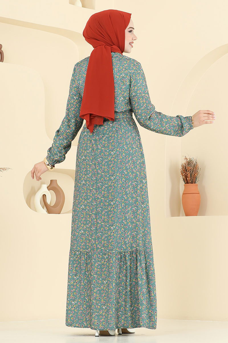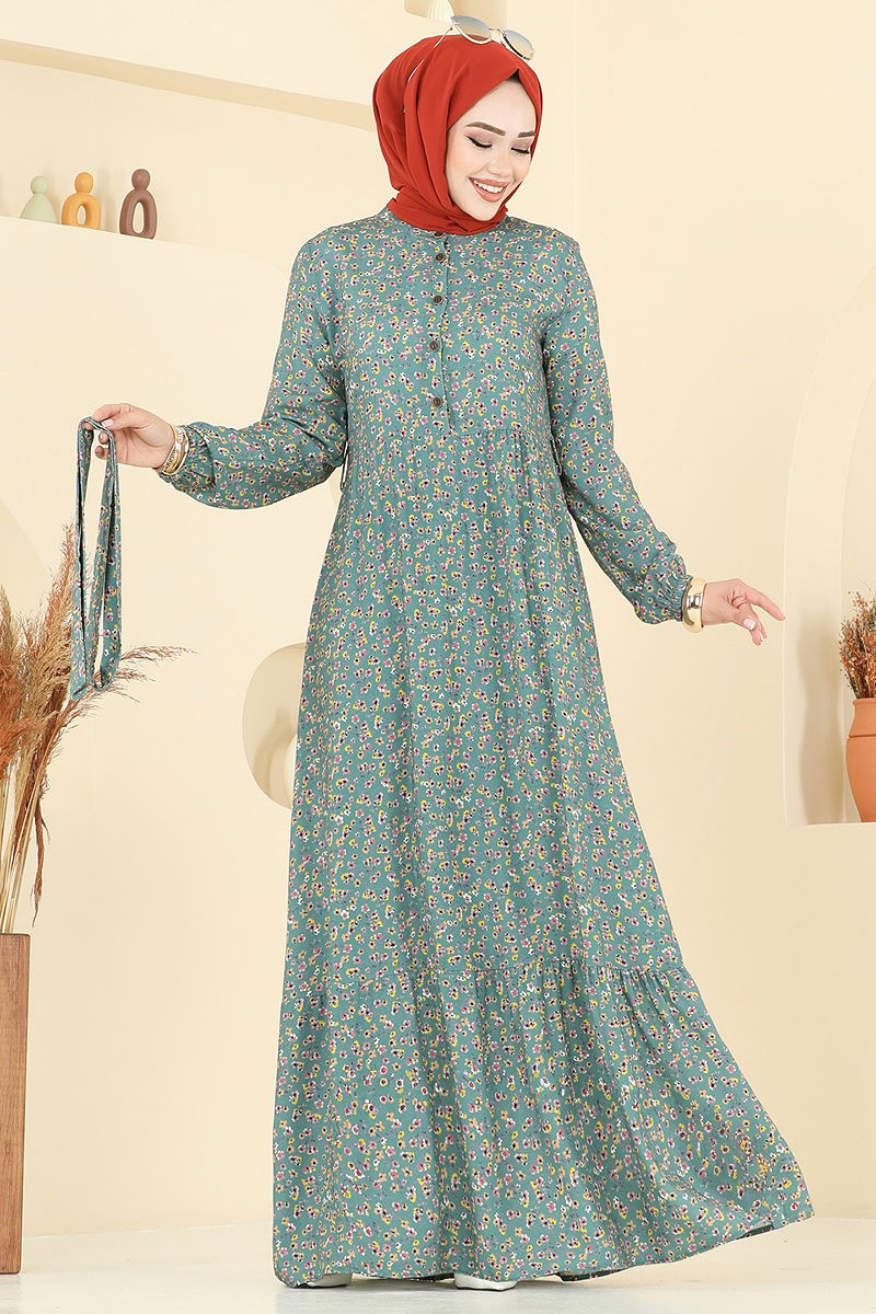 Şıklığı ve rahatlığı bir arada sunan Çiçek Desenli Viskon Elbise, tesettür giyim tarzınızı tamamlayacak mükemmel bir seçimdir. Dört mevsim boyunca rahatlıkla kullanabileceğiniz bu elbise, viskon kumaştan üretilmiş olup, nazikçe 30 derecede yıkanabilir. Yarım Hakim yaka ve önden yarım düğmeli tasarımı ile modern bir görünüme sahiptir. Ayrıca, bel bölgesinde bulunan kuşak sayesinde zarif bir siluet sunar. Lastikli manşetleri ile konforlu bir kullanım sağlar.