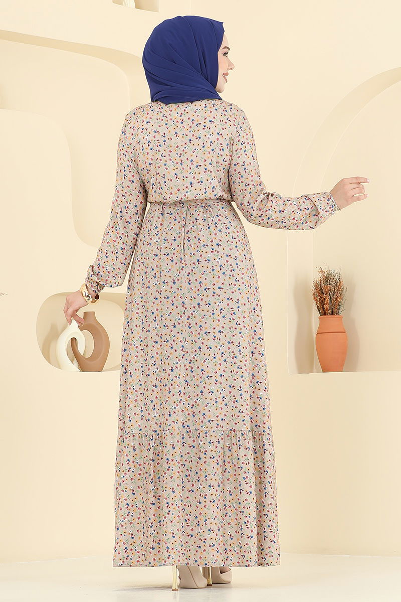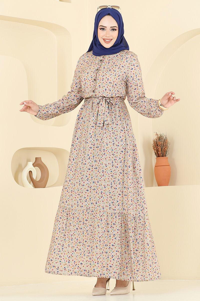Şıklığı ve rahatlığı bir arada sunan Çiçek Desenli Viskon Elbise, tesettür giyim tarzınızı tamamlayacak mükemmel bir seçimdir. Dört mevsim boyunca rahatlıkla kullanabileceğiniz bu elbise, viskon kumaştan üretilmiş olup, nazikçe 30 derecede yıkanabilir. Yarım Hakim yaka ve önden yarım düğmeli tasarımı ile modern bir görünüme sahiptir. Ayrıca, bel bölgesinde bulunan kuşak sayesinde zarif bir siluet sunar. Lastikli manşetleri ile konforlu bir kullanım sağlar.