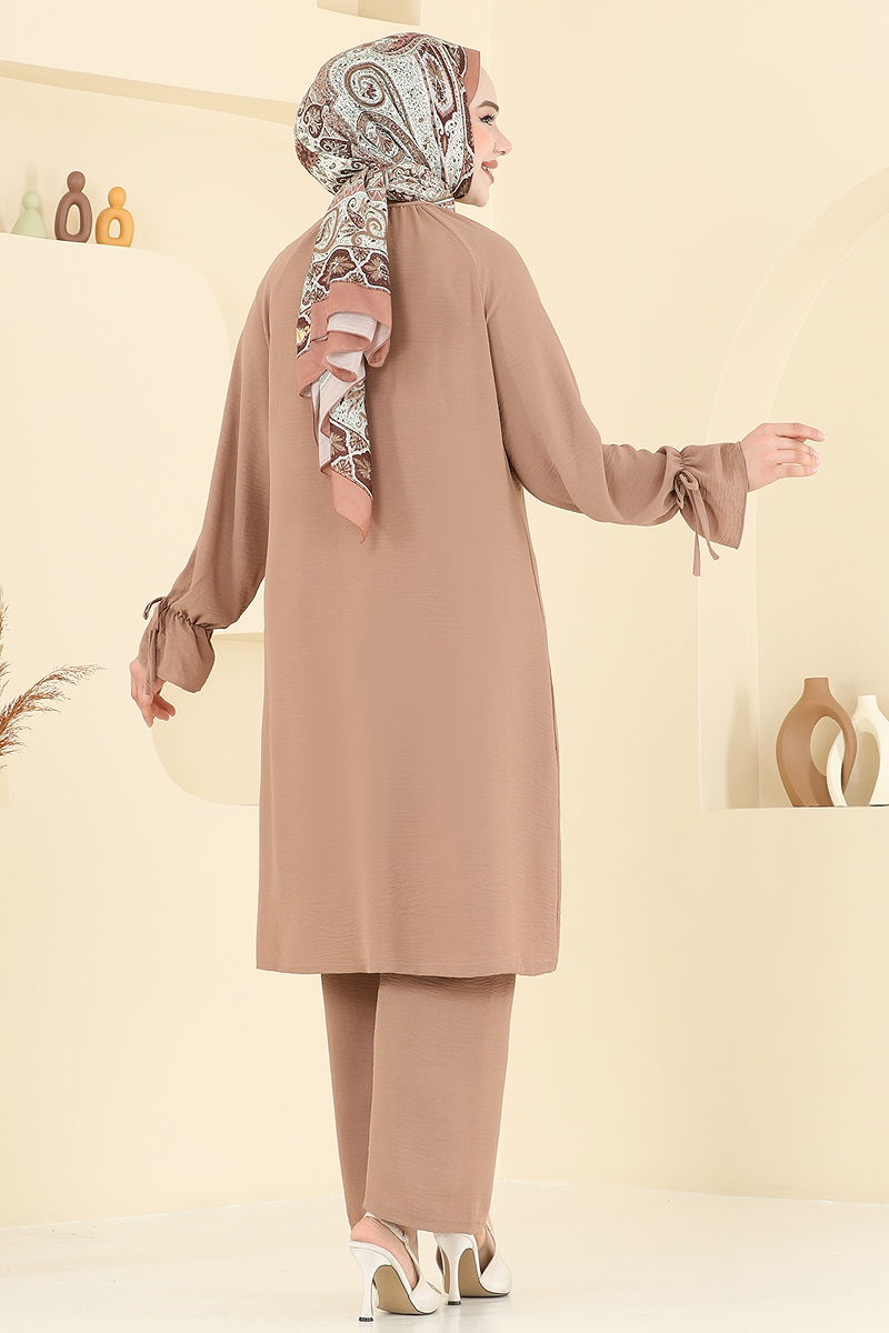 Bu şık Çiçek Detay Aerobin Takım, tesettür moda anlayışınıza yeni bir soluk getiriyor. Dört mevsim konforla kullanabileceğiniz bu ürün, rahatlık ve şıklığı bir arada sunuyor. 30 derecede hassas yıkama ile kolayca temizlenebilen takım, aerobin kumaştan üretilmiş olup, hafif ve nefes alabilir yapısıyla dikkat çekiyor. Manşeti lastikli ve bağcıklıdır.Tunik ve pantolon formundaki bu özel tasarım, bisiklet yaka ve ön düğme detaylarıyla modern bir görünüme sahiptir. Üründe kullanılan çiçek detaylar ve pullar el dikimi ile zarif bir dokunuş katarken, pantolonun elastik beli ve bağcıklı manşetler ise gün boyu konfor sağlar.