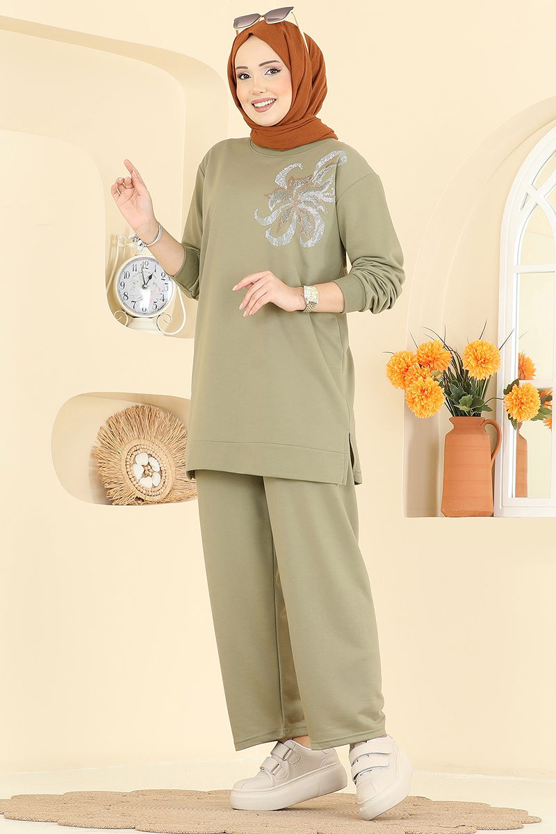 Çiçek Detaylı İki İplik Takım Çağla