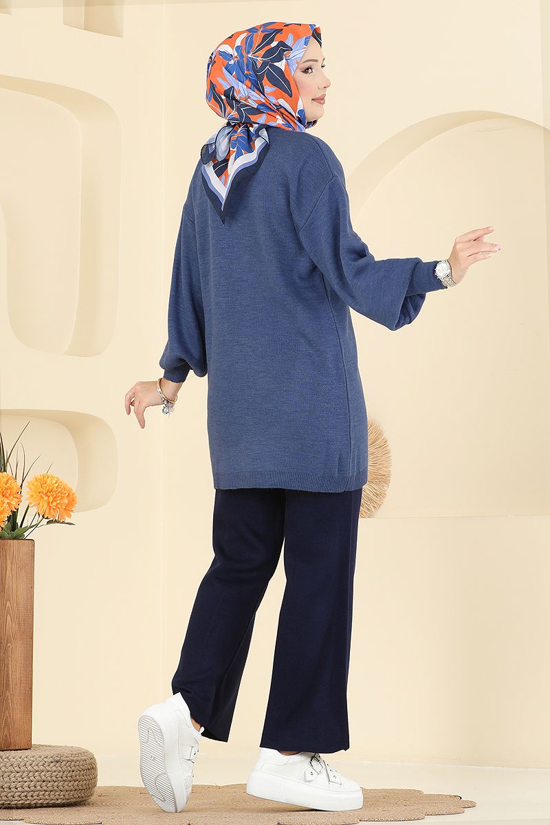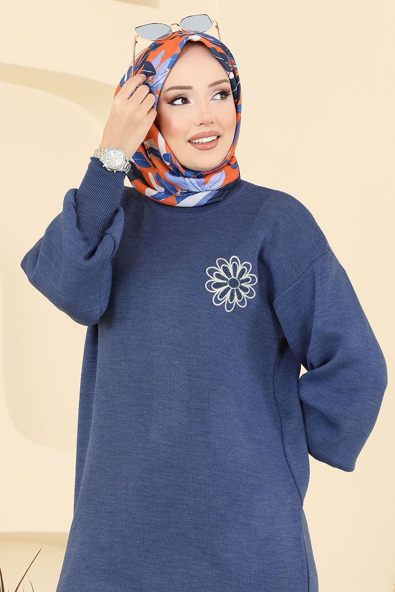 Çiçek Detaylı Triko Takım İndigo&Laci
