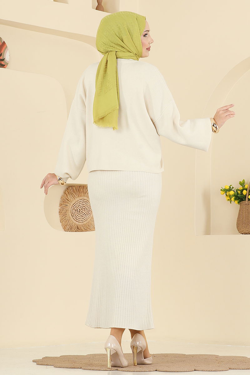 Çiçek İşlemeli Elbiseli Takım 1433MT581 Taş