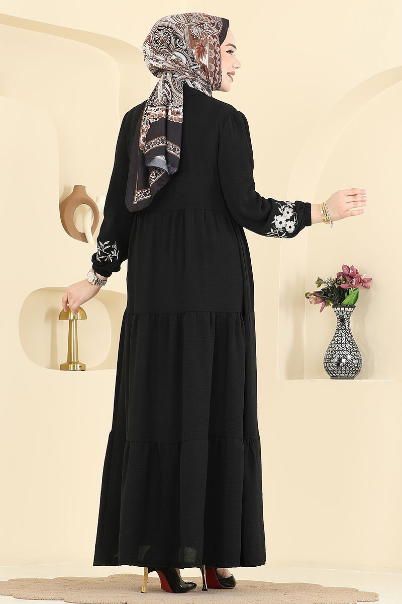 Çiçek Nakışlı Aerobin Elbise PL9198 Siyah