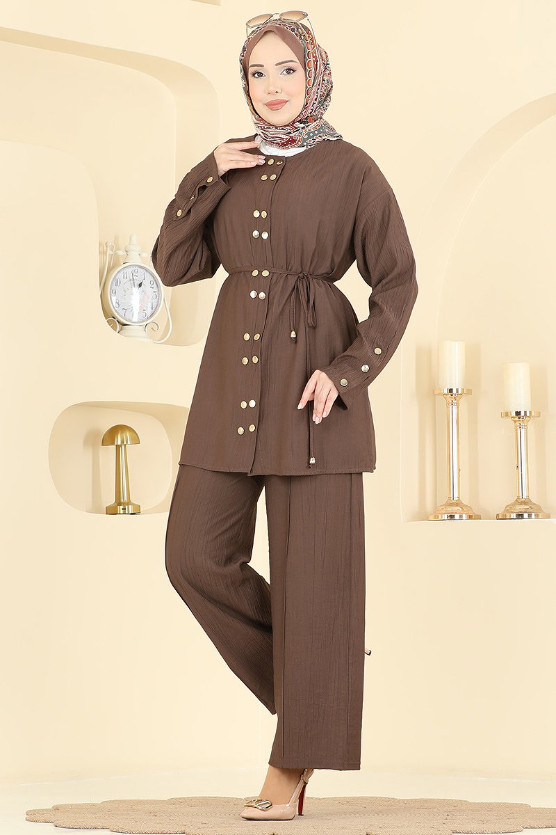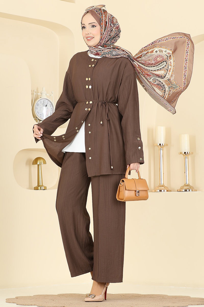 Çift Düğmeli 2 li Takım 3299HBS856 Kahve