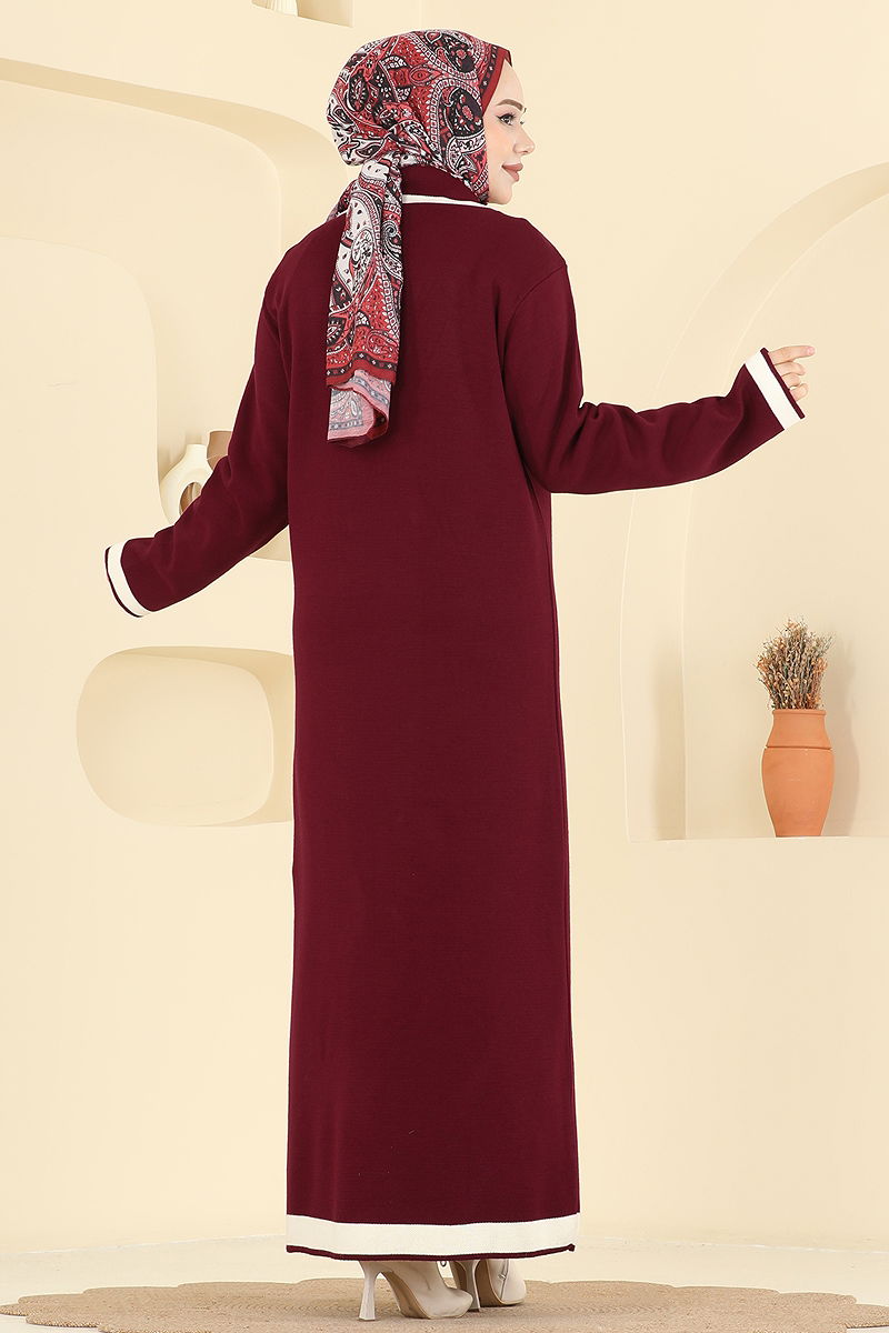 Çift Düğmeli Triko Elbise 1356MT581 Bordo