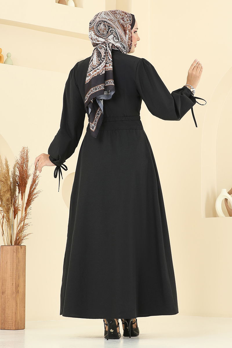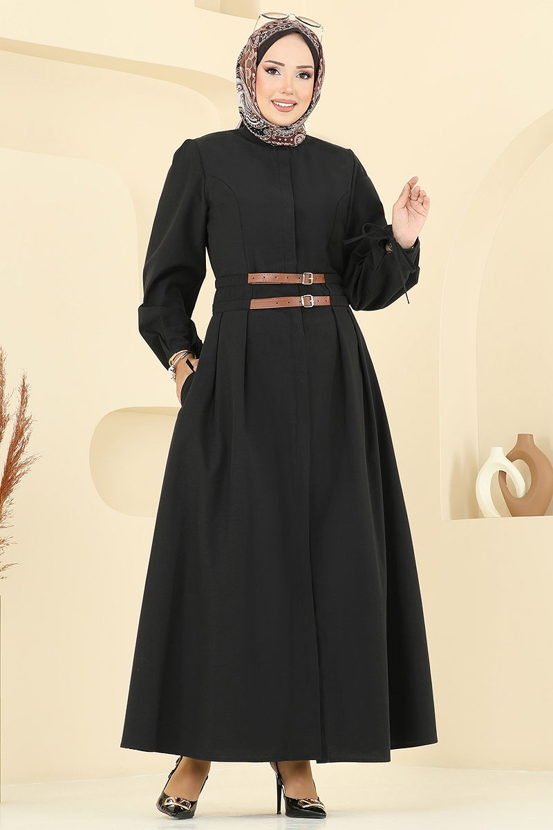 Çift Kemer Detaylı Elbise 3060KTR750 Siyah