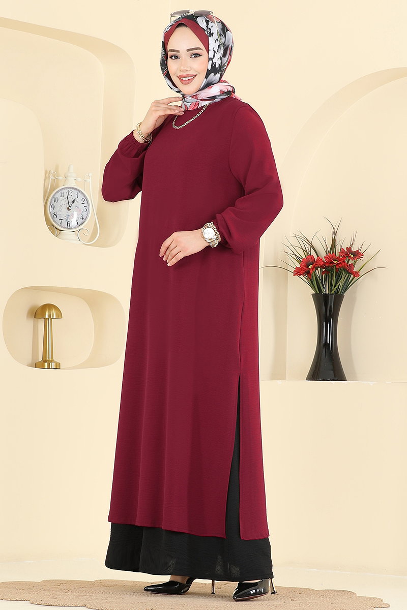 Çift Renkli Aerobin Elbise, dört mevsim rahatlıkla kullanabileceğiniz bir tesettür modelidir. Özellikle 30 derecede hassas yıkama imkanı sunan bu ürün, aerobin kumaştan üretilmiştir ve uzun ömürlü kullanım vaat eder. Bisiklet yaka ve yandan yırtmaçlı tunik tarzıyla modern bir görünüme sahip olan elbise, astarlıdır ve iç elbiseye sahiptir. Sırtından düğme ile kolaylıkla kullanılabilir ve manşetleri lastikli olan bu elbise, her ortamda şıklığınızı korumanızı sağlar.