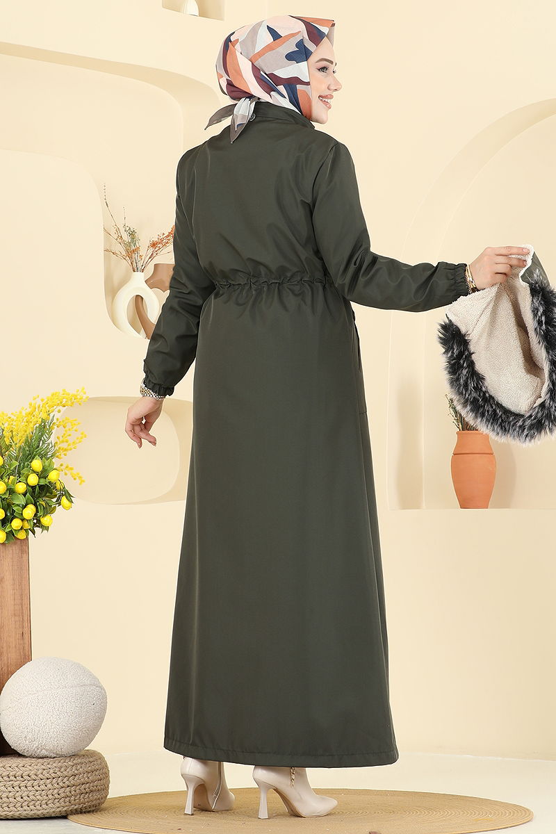 Çıkarılabilir Kapşonlu Bondit Trençkot Haki