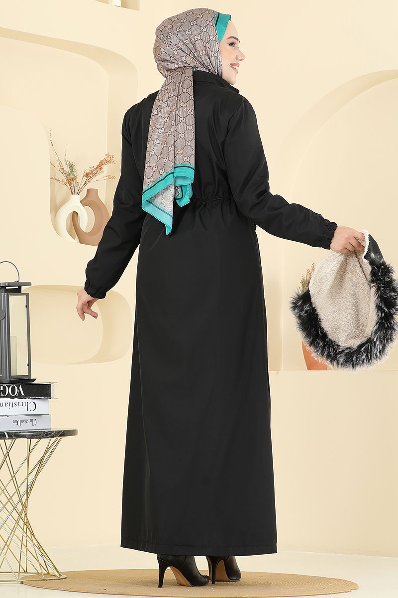 Çıkarılabilir Kapşonlu Bondit Trençkot Siyah