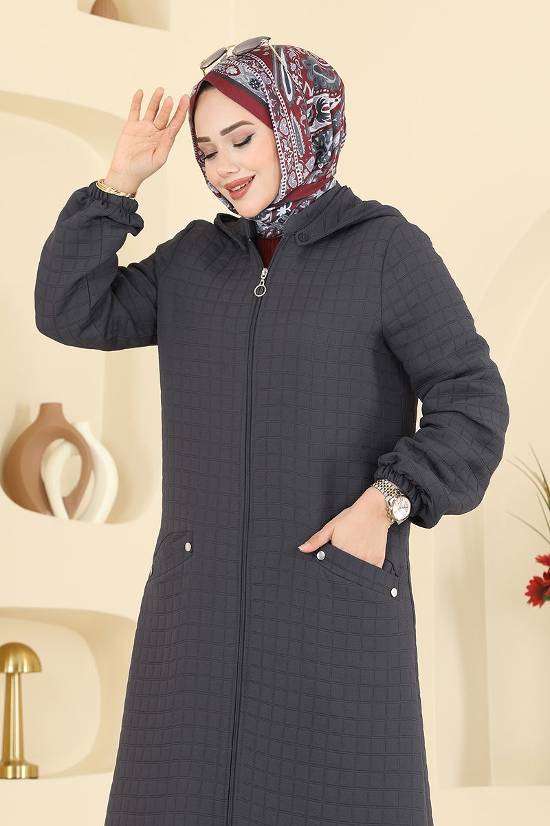 Çıkarılabilir Kapüşonlu Kapitone Ferace Antrasit