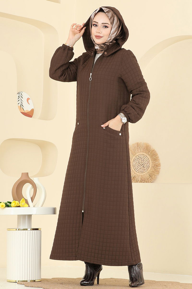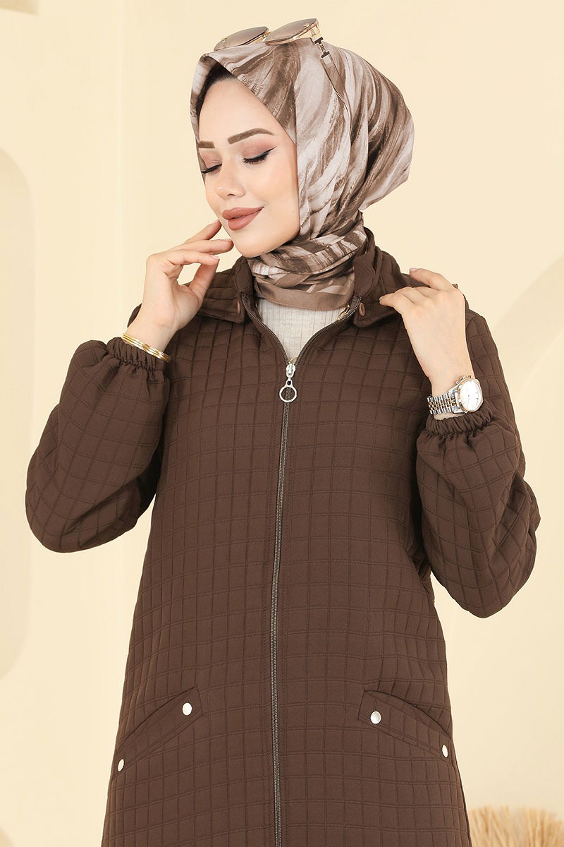 Çıkarılabilir Kapüşonlu Kapitone Ferace Taba