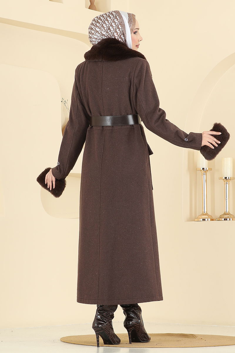 Çıkarılabilir Kürklü Kaşe Kaban Kahve