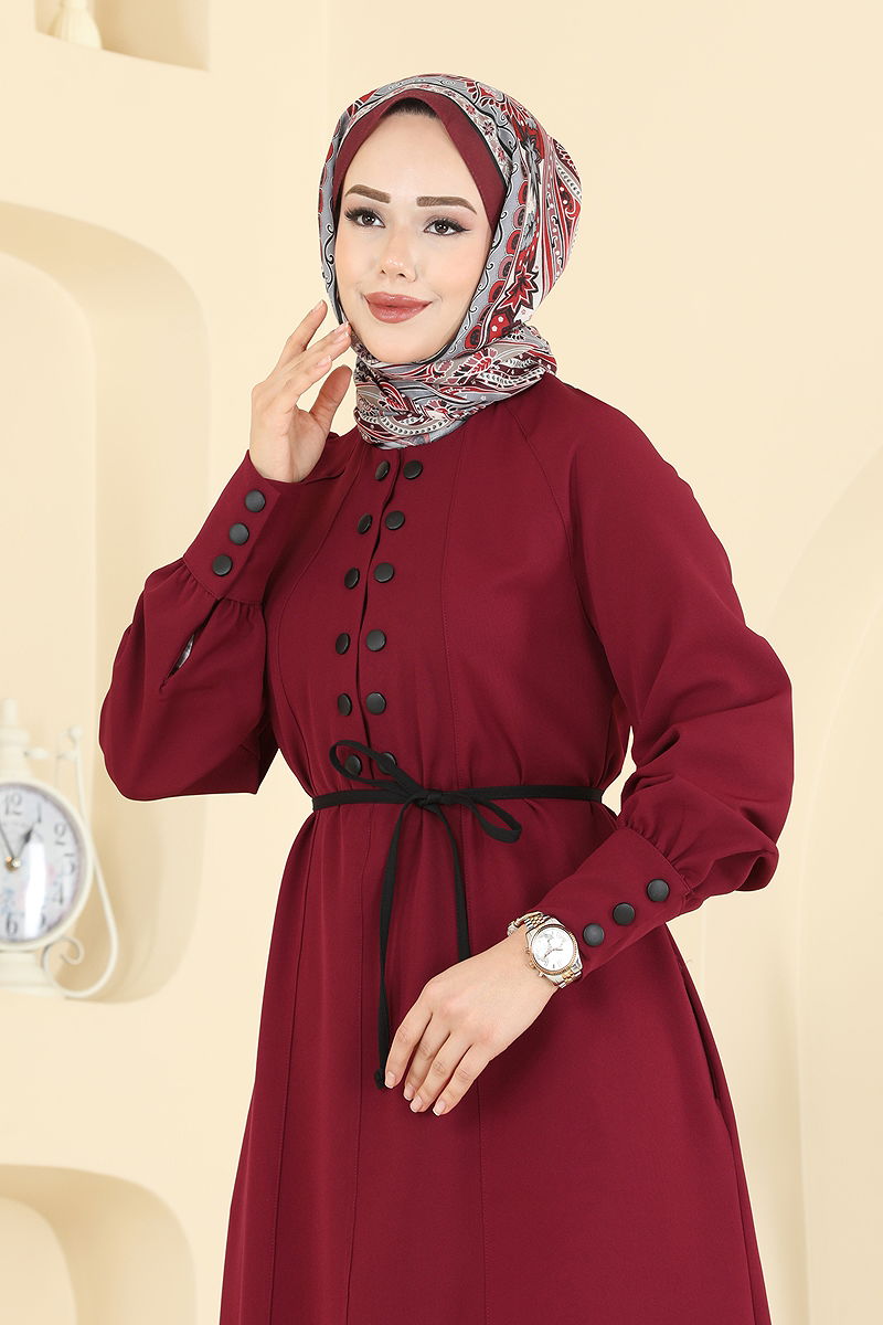 Çıtçıt Düğme Detaylı Elbise 2790SL432 Bordo