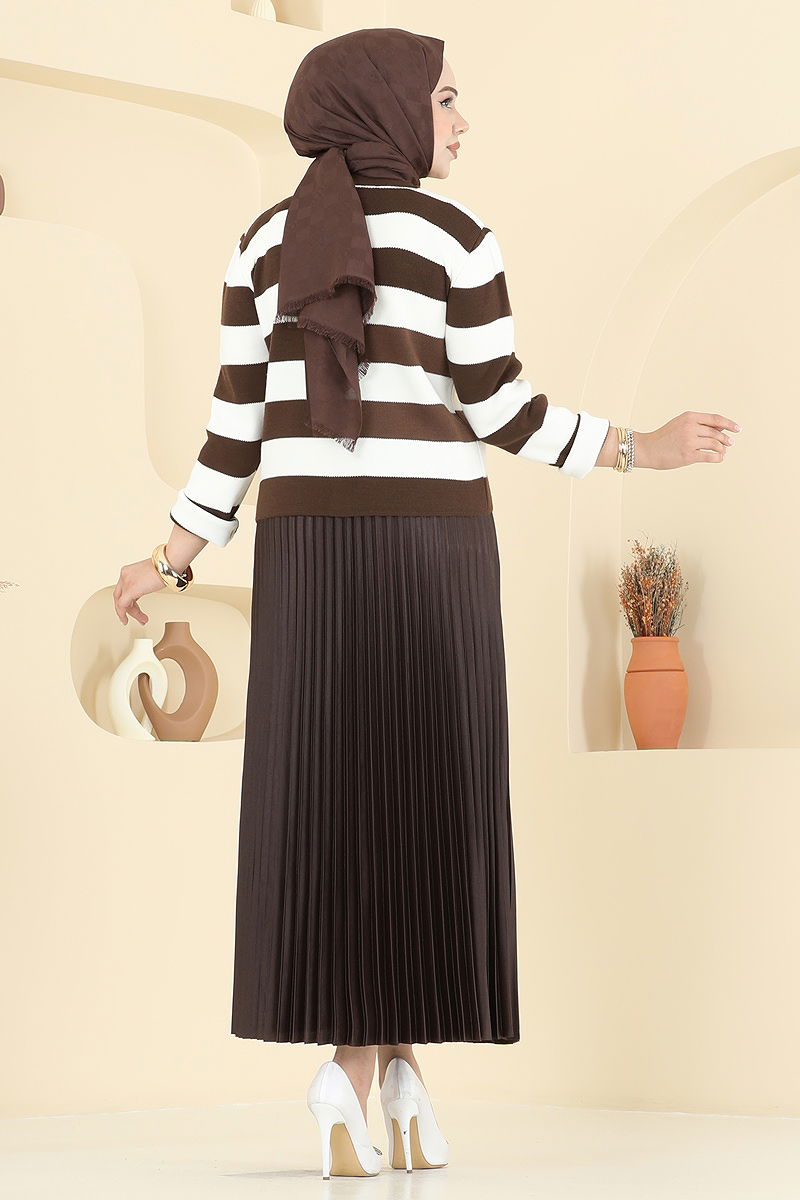 Çizgi Detay Hırkalı Takım Kahve