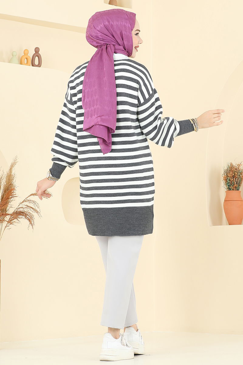 Çizgi Detay Triko Tunik Antrasit