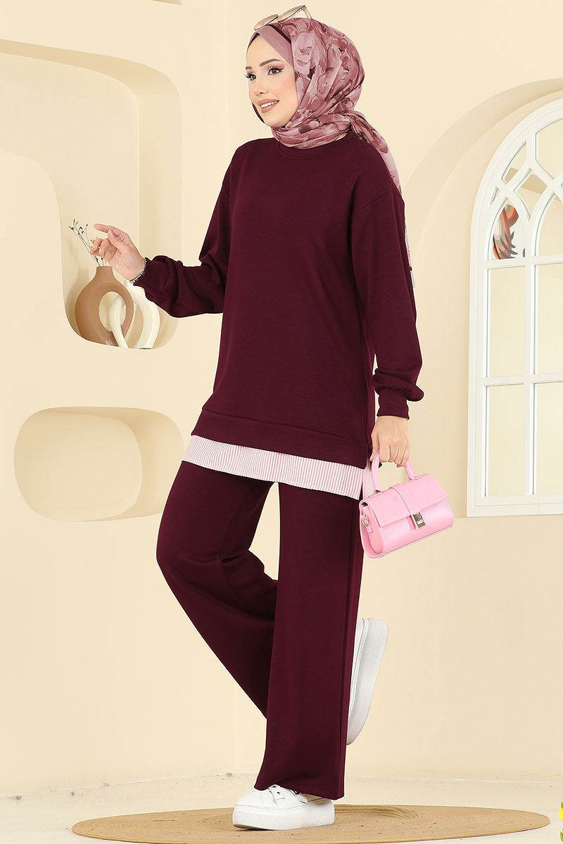 Çizgi Detaylı Modal Takım 3246HBS856 Açık Bordo