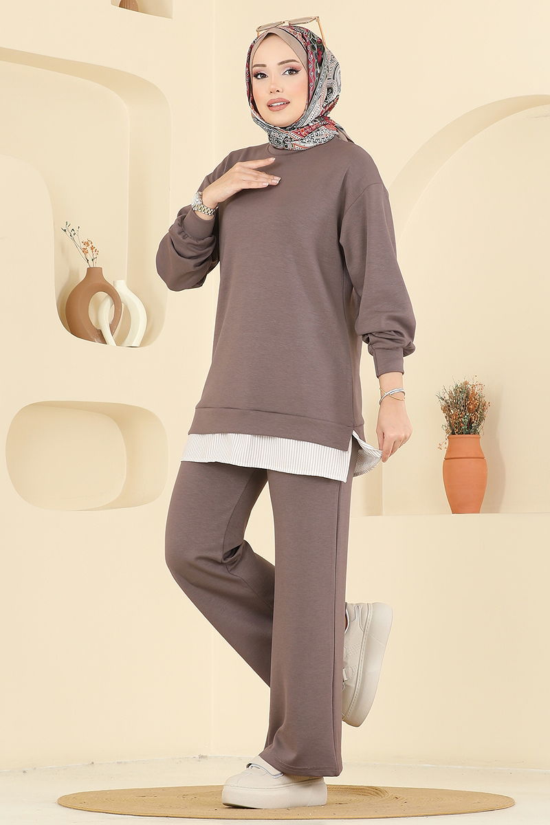 Ürün Özelliği : Yeni sezon tesettür moda ürünüdür. Ürün Bisiklet yakadır. Tunik yandan yırtmaçlıdır.. Astarsızdır. Pantolon beli lastiklidir.Konsept fotoğraf çekimlerinden dolayı üründe ton farklılığı olabilir.