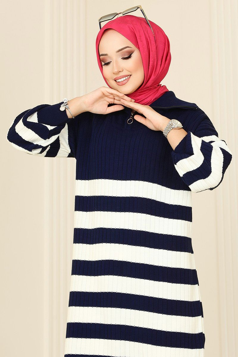 Çizgi Detaylı Triko Elbise model tesettür ürünüdür.Sonbahar ve Kış sezonunda kullanılabilir.30 derecede sıkma yapılmadan yıkanmalıdır.Birinci sınıf Triko kumaştan imal edilmiştir.Ürün Gömlek yakadır.Astarsızdır.(Modelin üzerindeki ürün standart bedendir.)Önden kullanılabilir yarım fermuarı bulunmaktadır.