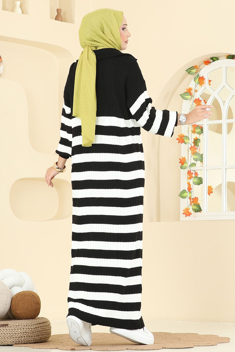 Half Zipper Knit Dress DRESS model is a hijab product. It can be used in Autumn and Winter seasons. It should be washed at 30 degrees without squeezing. It is made of first-class knit fabric. The product has a straight collar. It is unlined. (The product on the model is standard size.) It has a front usable half zipper.