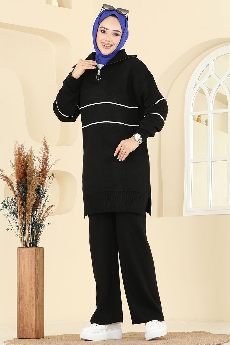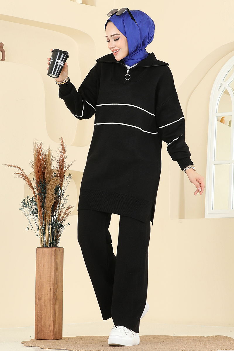 Çizgi Detaylı Triko Takım 01050BRZ597 Siyah