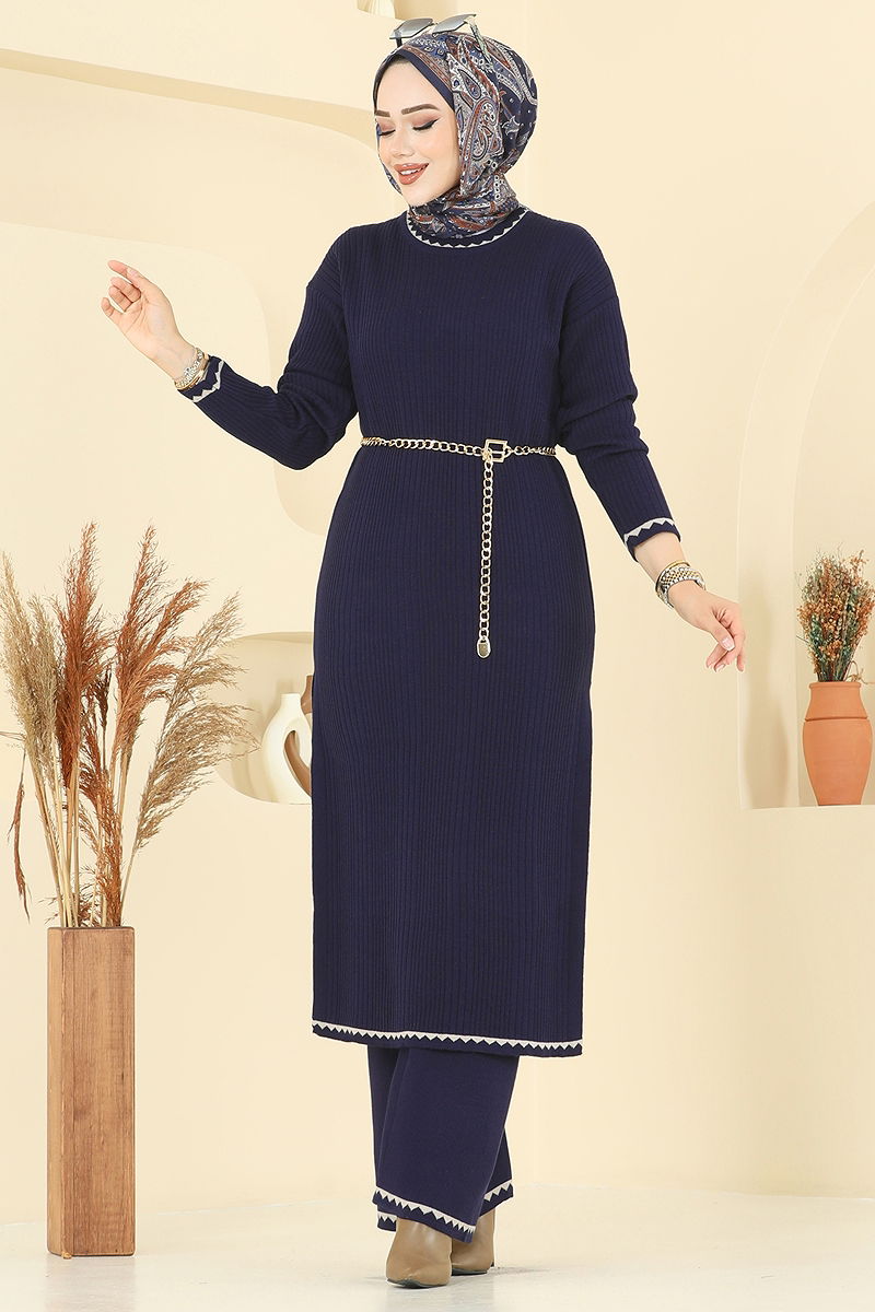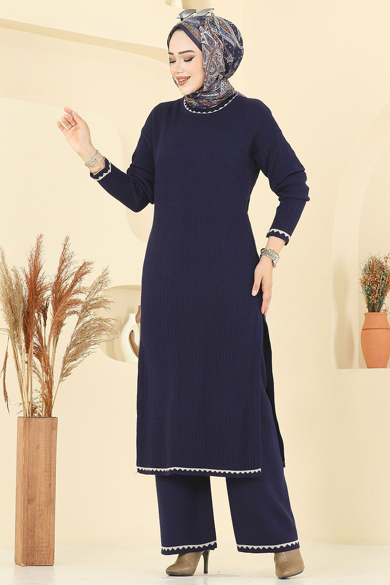 Yeni sezonun vazgeçilmezi Çizgi Detaylı Triko Takım KOMBİN, şıklığı ve rahatlığı bir arada sunuyor. Sonbahar ve kış aylarında ideal olan bu tesettür takım, hassas yıkama önerisiyle uzun süre ilk günkü gibi kalır. Triko kumaşının sıcak tutan yapısı sayesinde soğuk günlerde konforunuzu artırır. Tunik yan yırtmaç detaylarıyla modern bir dokunuş kazanırken, elastik pantolon beli sayesinde gün boyu rahat bir kullanım sunar. Standart bedenlerde (38-46) üretilen bu takım, her bedene uyum sağlayarak kusursuz bir görünüm vadediyor.