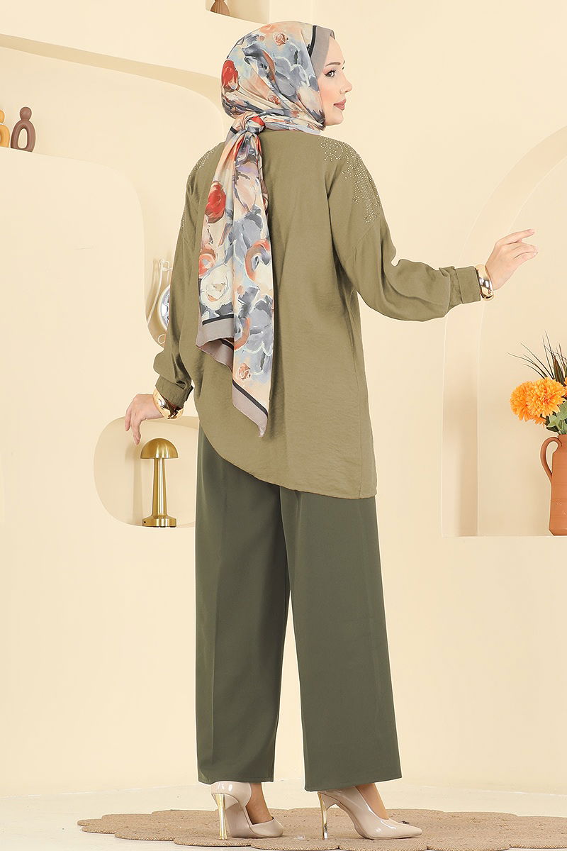 Çizgi Hatlı Dabıl Pantolon Açık Haki