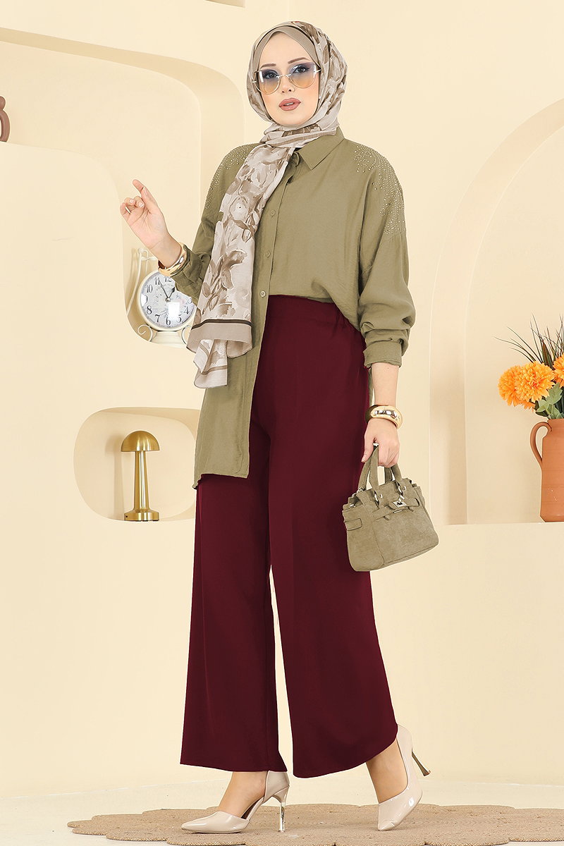 Çizgi Hatlı Dabıl Pantolon Bordo